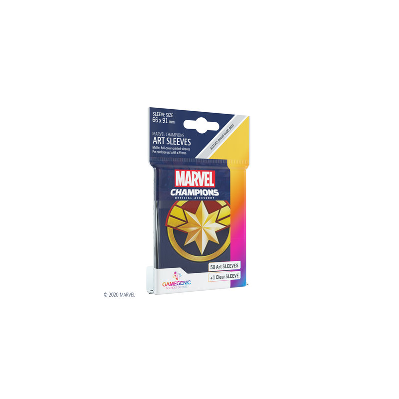 Fundas oficiales de Marvel Champions con ilustración y diseño de CAPTAIN MARVEL, están optimizadas para las cartas de Marvel Champions y se pueden usar con cualquier otro juego de cartas de tamaño estándar. Contiene 50 fundas sin borde ilustradas a todo color y 1 funda transparente (para el