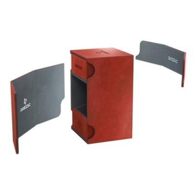 El modelo convertible Watchtower 100+ combina caja para mazos, cajón para accesorios y bandeja para cartas en un elegante producto. La bandeja para cartas puede contener hasta 100 cartas con doble funda y las protege con un suave forro interior de microfibra. El cajón para accesorios es perfecto para guardar dados, fichas y otros artículos pequeños.