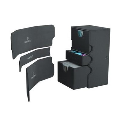 Esta caja convertible, de gran tamaño y extremadamente robusta, contiene dos bandejas para cartas extraíbles que permiten almacenar hasta 200 cartas con doble funda. El modelo Stronghold está forrado por fuera con el elegante material Nexofyber, y por dentro, con un forro de microfibra suave. Además, contiene un cajón para accesorios. Al igual que otros productos convertibles, sus solapas pueden extraerse y acoplarse a la parte posterior de la caja. Sus potentes imanes garantizan un cierre seguro. Las solapas y las bandejas para cartas extraíbles permiten personalizar la caja combinando las piezas a tu gusto.