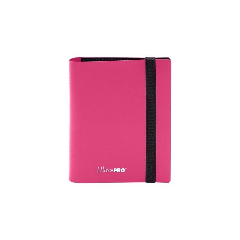 Carpeta 2 bolsillos PRO-Binder Eclipse rosa Ultra Pro. Capacidad para guardar hasta 80 cartas enfundadas, a razón de 2 bolsillos por cada una de las 20 páginas que tiene la carpeta. Aspecto y tacto de cuero. Tira elástica para mantener la Pro Binder cerrada.