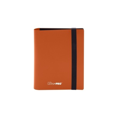 Carpeta 4 bolsillos PRO-Binder Eclipse naranja Ultra Pro. Capacidad para guardar hasta 160 cartas enfundadas, a razón de 4 bolsillos por cada una de las 20 páginas que tiene la carpeta. Aspecto y tacto de cuero. Tira elástica para mantener la Pro Binder cerrada.