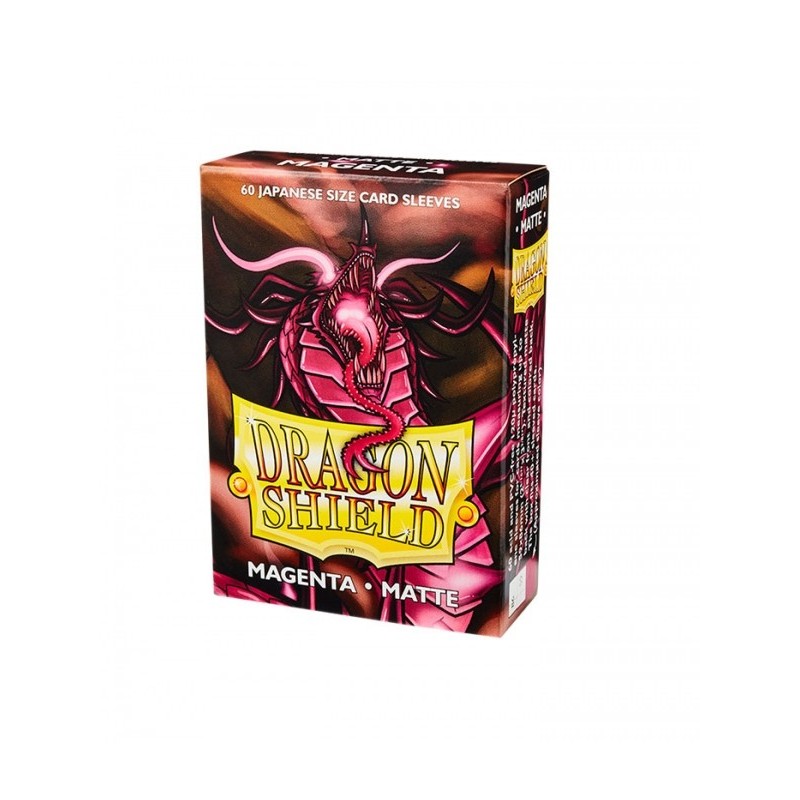 Fundas Dragon Shield Matte Magenta de tamaño japonés para TCG como Yu-Gi-Oh y Cardfight Vanguard. Frente transparente y parte posterior mate texturizada.
