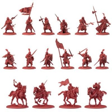 Canción de hielo y fuego: El juego de miniaturas lleva a la mesa de juego las batallas épicas, las intrigas políticas y los apasionantes personajes de las novelas mundialmente aclamadas por la crítica de George R. R. Martin. Utilizando miniaturas premontadas de gran calidad que se organizan y mueven en bandejas de unidad, lidera a los ejércitos y los héroes de las grandes Casas de Poniente en su lucha por el Trono de hierro en una variedad de modos de juego diferentes.