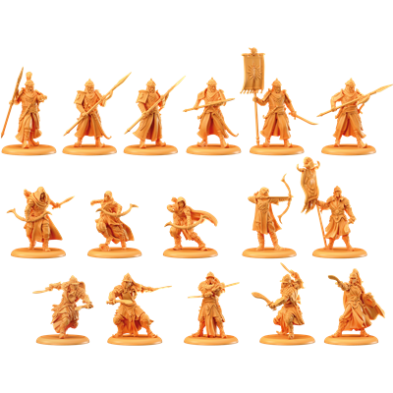 El estandarte de los Martell ondula en Lanza del Sol como símbolo del control que esta Gran Casa ejerce sobre el sur de Poniente gracias a que tiene entre sus filas a algunas de las tropas más rápidas que están implicadas en la Guerra de los Cinco Reyes. Su doctrina militar consiste en atacar de forma tan rápida como contundente y en evitar el posterior contraataque. Debido a ello, el grueso de sus ejércitos está formado por lanceros y hostigadores, mientras que las acciones de flanqueo y refriega quedan en manos de sus acosadores de Lanza del Sol, que son una de sus unidades de élite. Sin embargo, es en su firme liderazgo donde se encarna el auténtico poder de la Casa Martell, ya que el príncipe Doran rige su Gran Casa desde Lanza del Sol mientras que el príncipe Oberyn hace lo propio en los campos de batalla. Además, la valentía de Areo Hotah le ha servido para ganar muchas batallas a fuerza de puro tesón y las intrigas políticas de Ellaria Arena mantienen a sus enemigos en la incertidumbre constante de no saber dónde ni cuándo la Casa Martell llevará a cabo su próximo ataque.