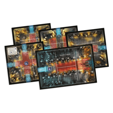 18 miniaturas de Enemigo, 2 miniaturas de Jefe, 11 piezas de Mapa, 2 cartas de PS de jefe, 15 cartas de Acción de jefe, 102 cartas de Campaña, 7 cartas de Enemigo, 2 cartas de Arma de fuego, 7 cartas de Recompensa, 1 carta de Objeto consumible, 1 carta de Reglas.