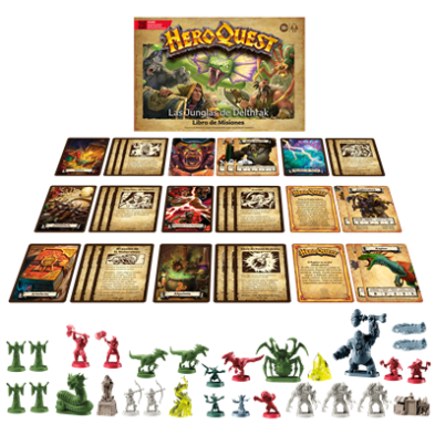 Incluye un Libro de Misiones que cuenta con 16 Misiones, 36 cartas de juego ilustradas, 29 miniaturas bien detalladas y 39 piezas de cartón de doble cara.