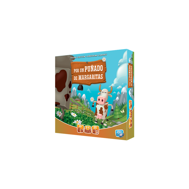 Eres una vaca, un pacífico animal que recorre las praderas y mata el tiempo rumiando flores. Pero como una vaca de otro rebaño se atreva a degustar tus margaritas delante de tu hocico, ¡que se atenga a las consecuencias! 1. ¡Elige un dado! 2. ¡Mueve tu vaca y cómete las mejores flores! 3. ¡Bátete en
