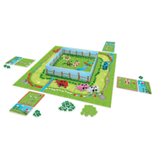 1 reglamento, 4 Vacas, 4 dados de madera, un montón de fichas (64), 1 tablero principal y 4 tableros personales