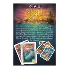 La baraja de Skull King está formada por cuatro palos de 14 cartas cada uno más algunas cartas especiales. A lo largo de varias rondas (en el modo clásico son 10, pero en esta edición te proponemos variantes para que adaptes tu partida) los jugadores tratarán de adivinar cuantas bazas van a ganar en función de sus cartas (¡y de las caras de los grumetes que tienen enfrente!). Si cumplen el envite, los jugadores sumarán muchos puntos. Pero esto no siempre será fácil... ¡Porque por eso hay las cartas especiales! Los piratas, por ejemplo, siempre ganan a cualquier carta de palo; las cartas de huida te harán perder automáticamente (a veces una retirada a tiempo puede ser una gran victoria); la carta de Skull King gana a los piratas, pero pierde contra las sirenas, que a su vez sucumben ante los piratas.