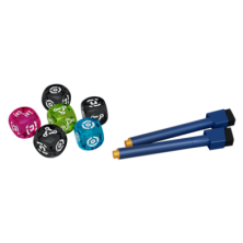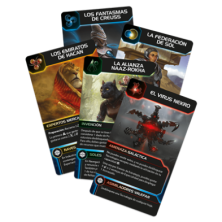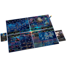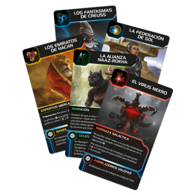 32 hojas de jugador, 1 hoja de Mecatol Rex, 8 rotuladores de tiza líquida 3 dados negros, 3 dados de Potenciación, 24 cartas de Facción 25 cartas de Evento, 12 cartas de Objetivo, 16 cartas de Reliquia, 12 cartas de Plan, 8 cartas de Referencia, 1 carta de Portavoz , Guía de «Aprende jugando», Reglamento