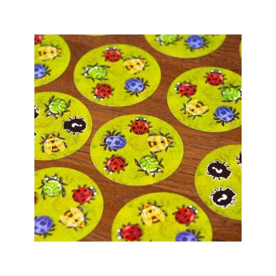 Coloca las cartas de ejemplo en el centro de la mesa, toma tus insectos y sé el primero en copiar el patrón que muestran esas mismas cartas de ejemplo. Organiza tus cartas de insecto con la misma disposición de insectos y colores, fíjate bien en si están colocados bocarriba o bocabajo (a los insectos les encanta girar sobre sí mismos) y ordénalos exactamente igual que el modelo.